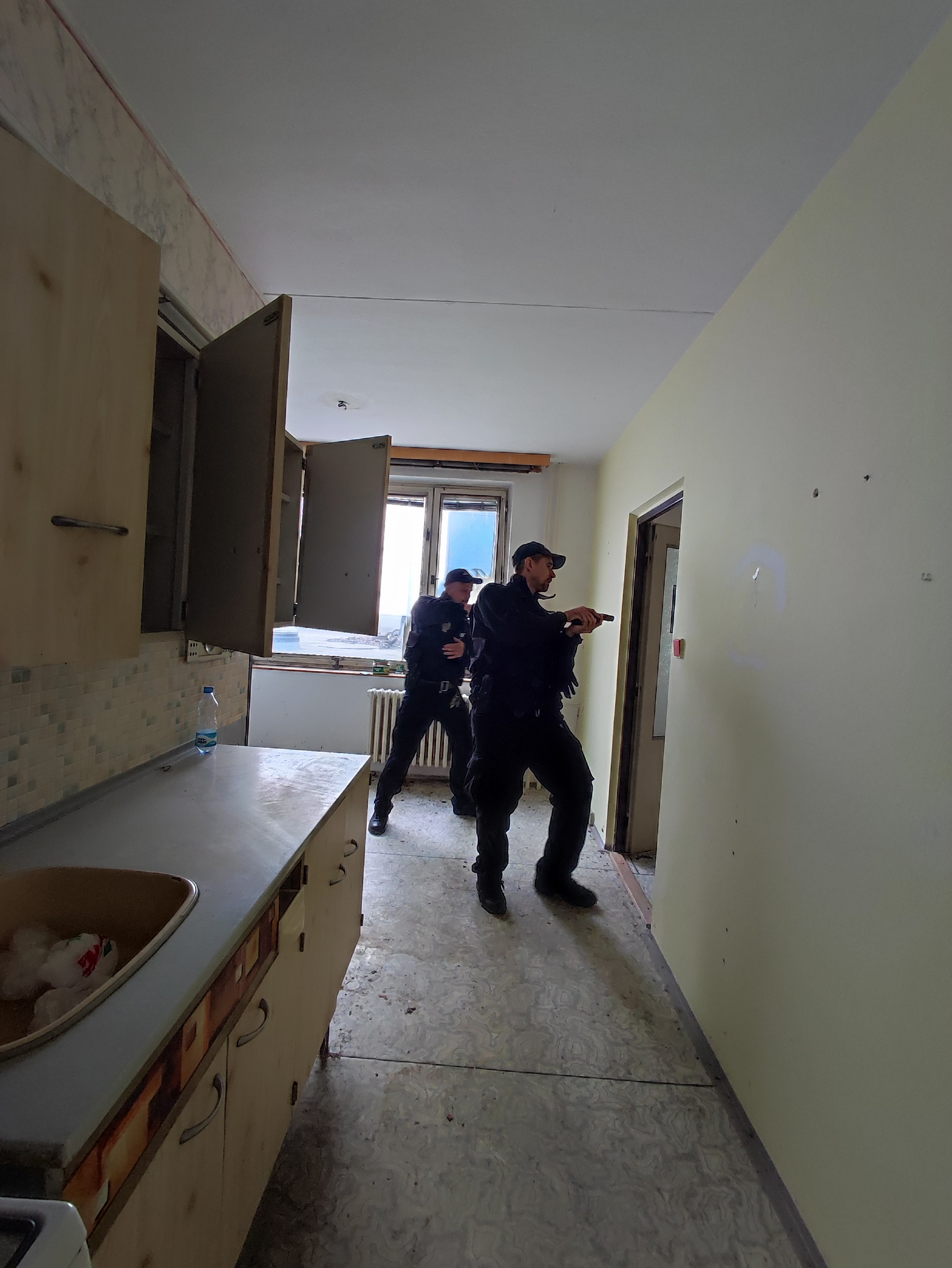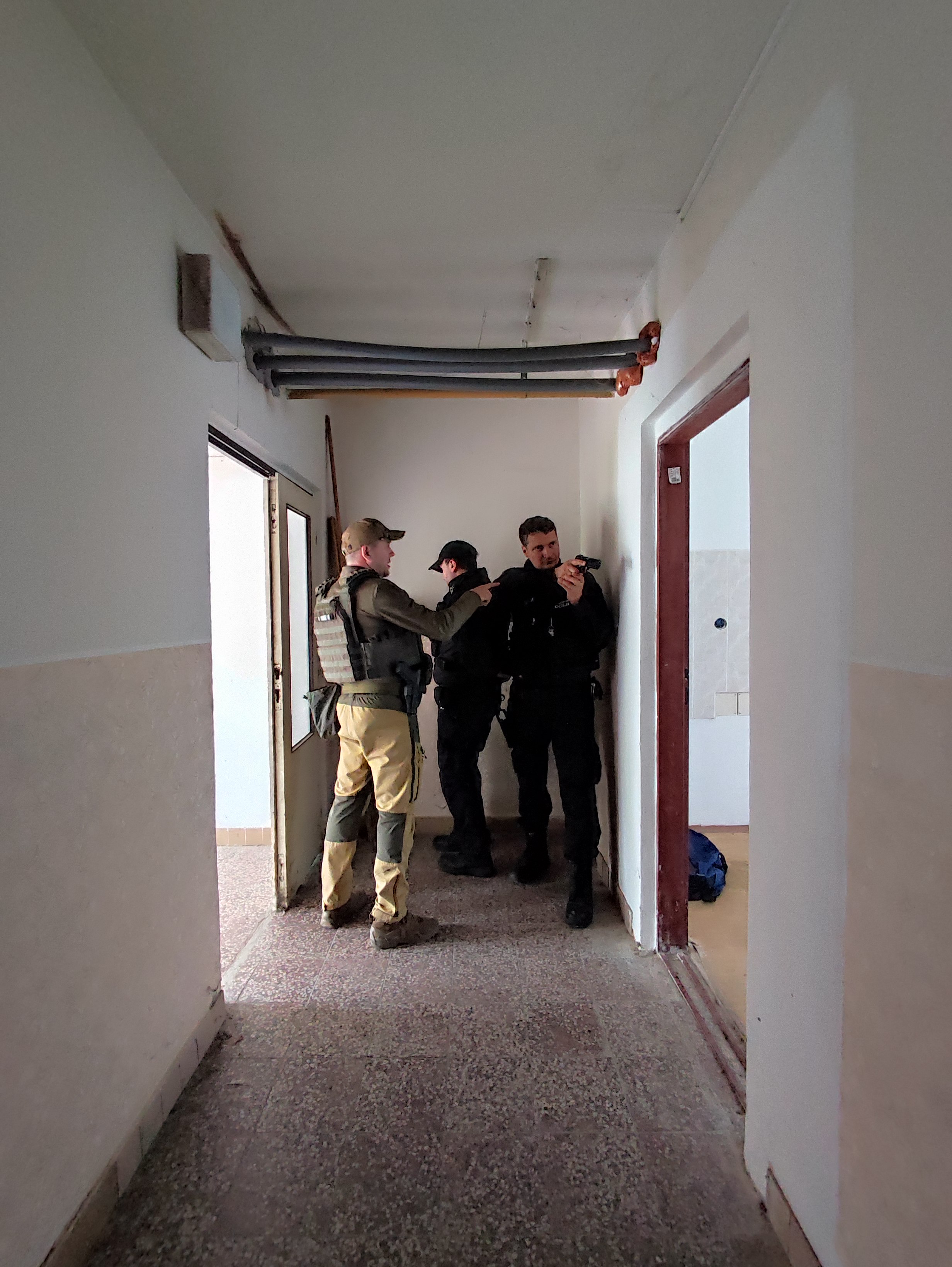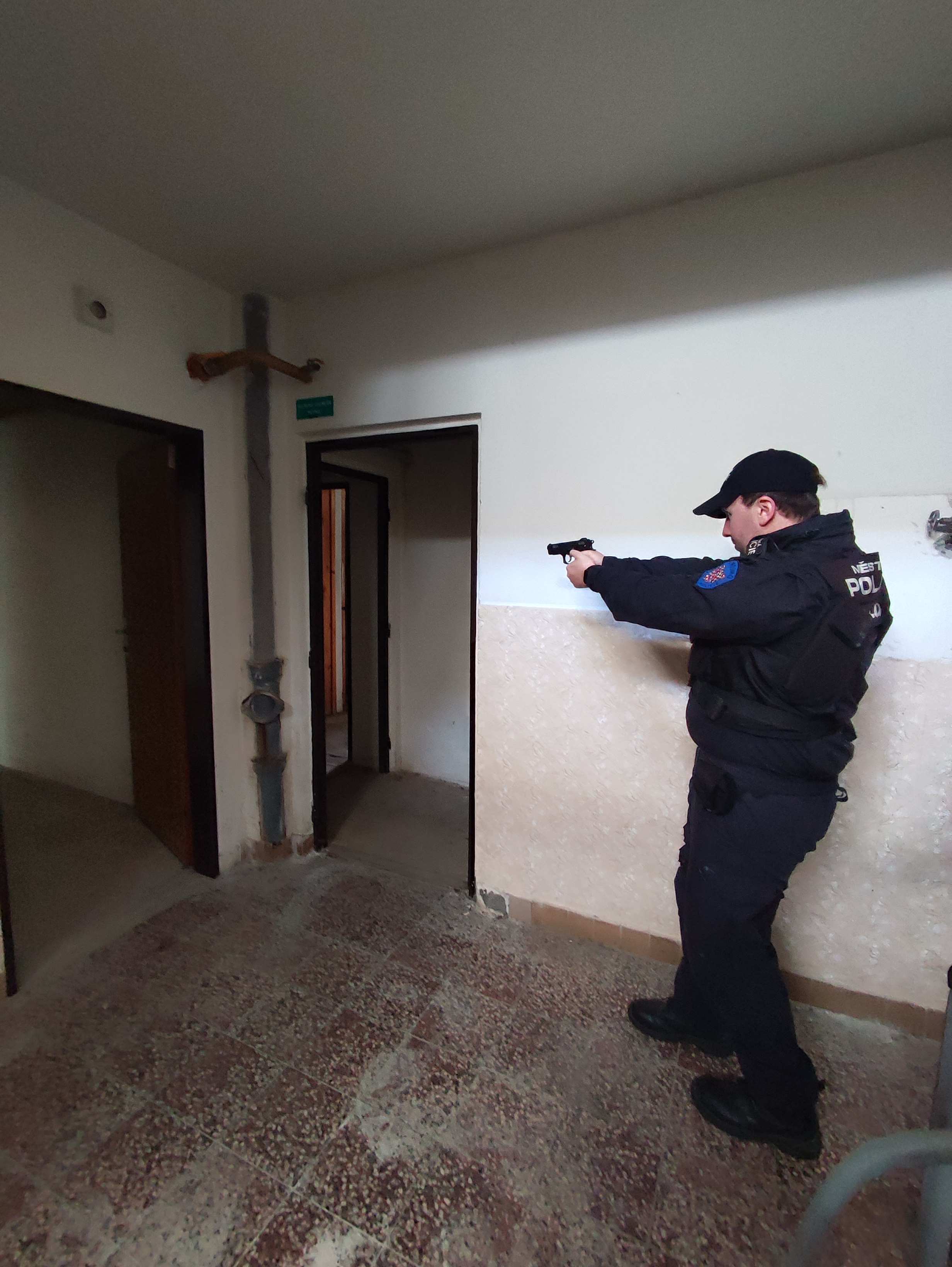 Taktické cvičení se střelnou zbraní při vstupu do opuštěné budovy