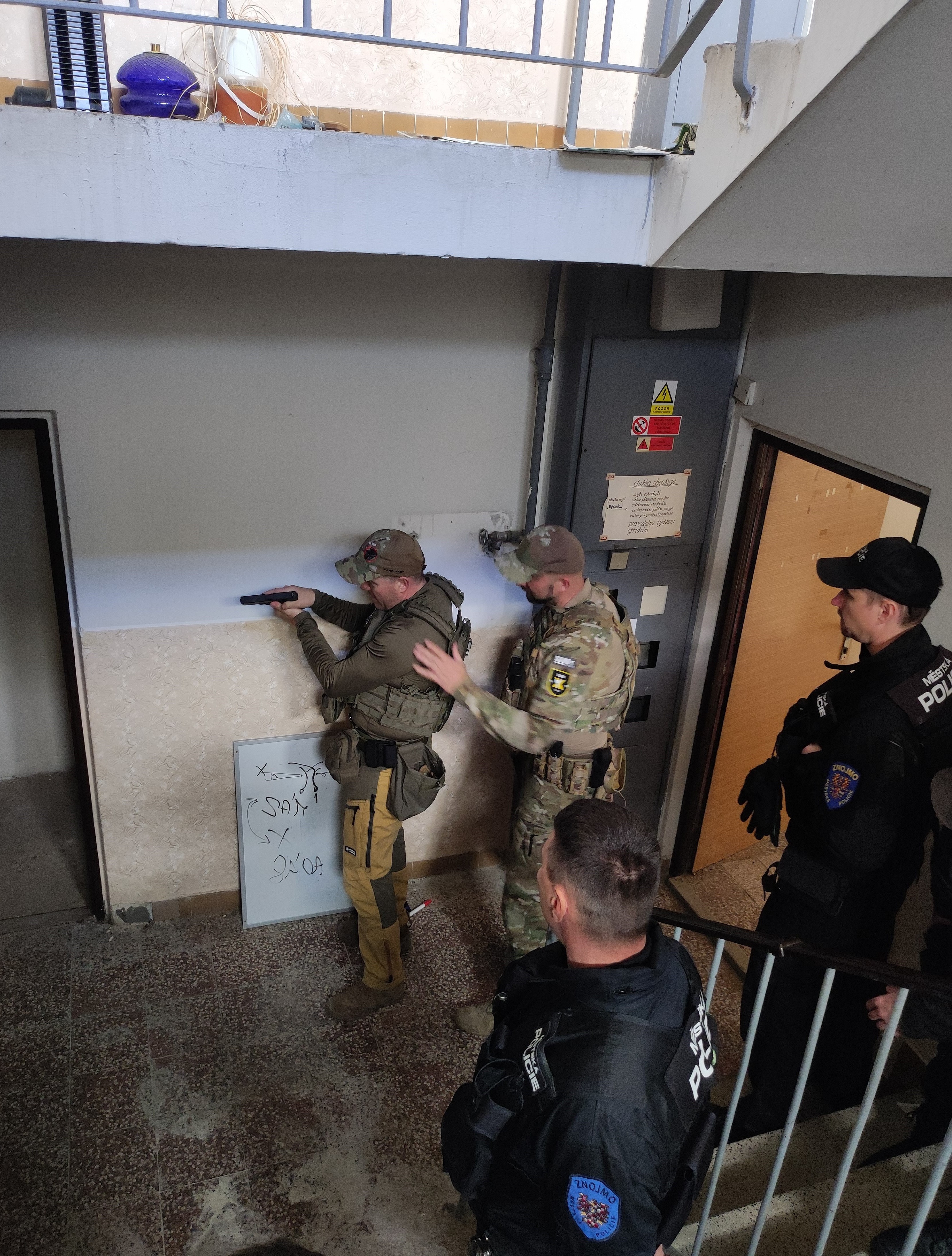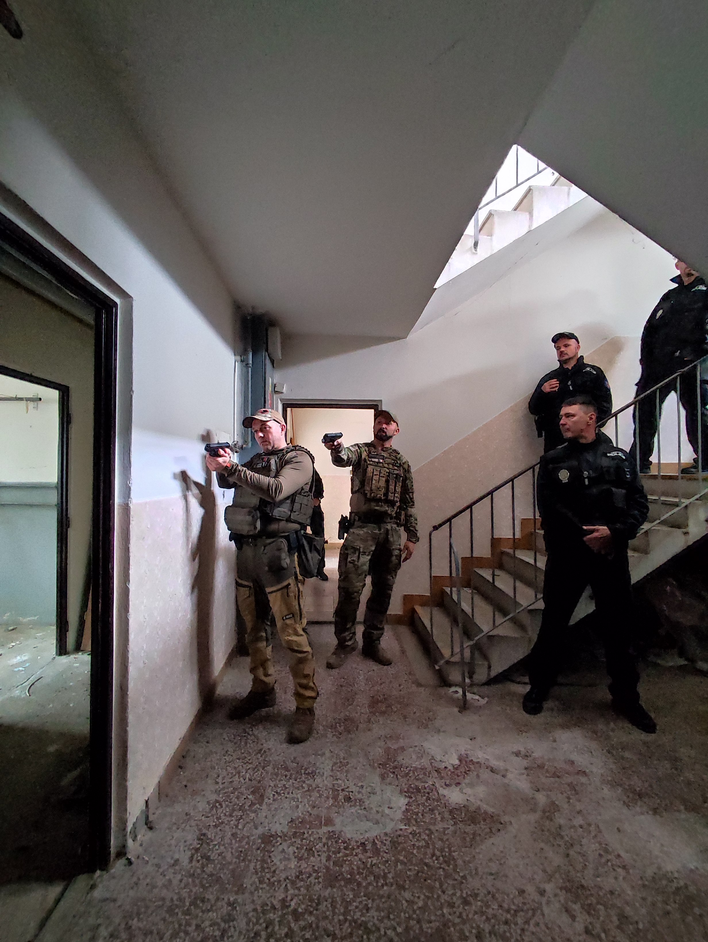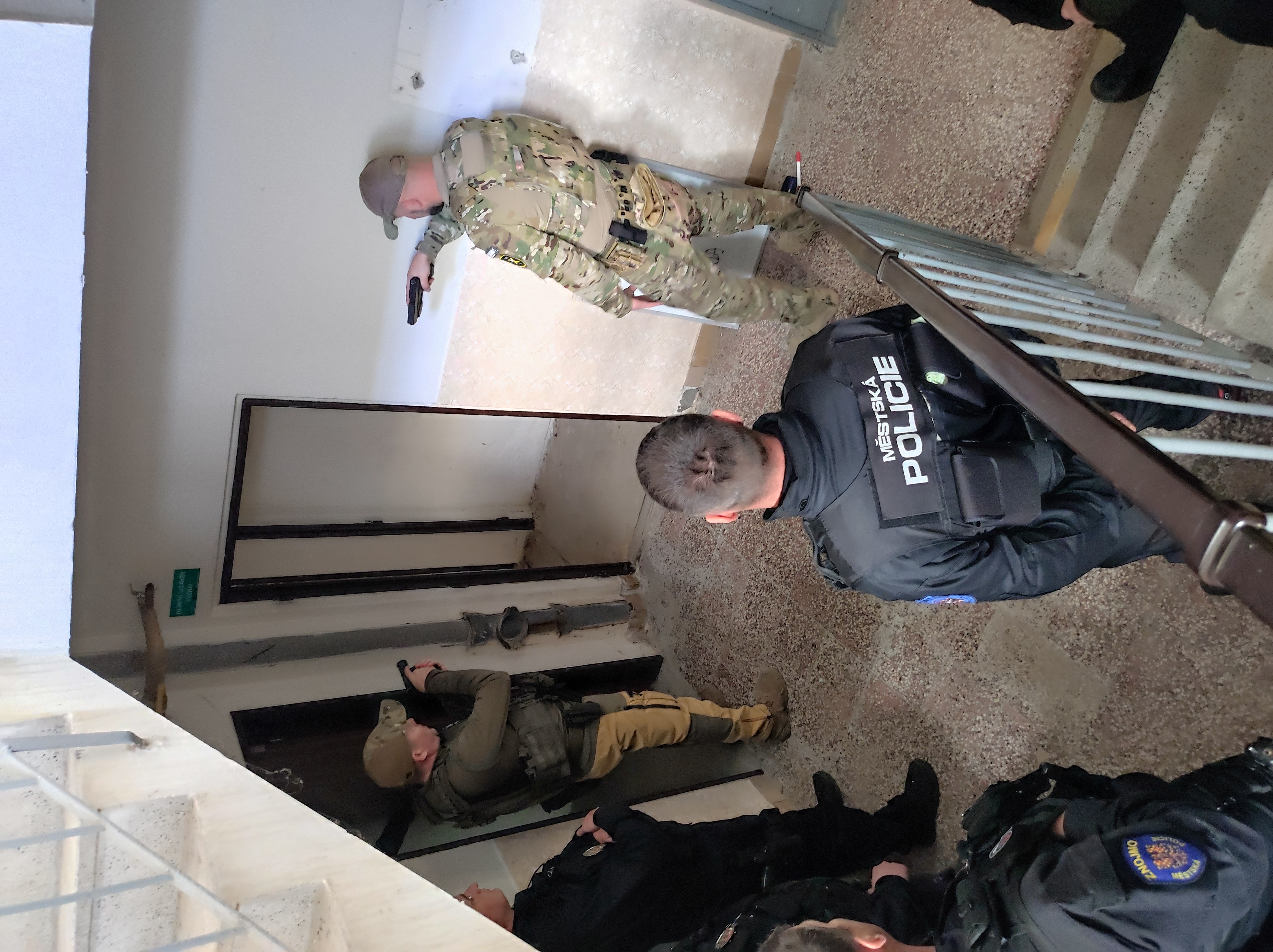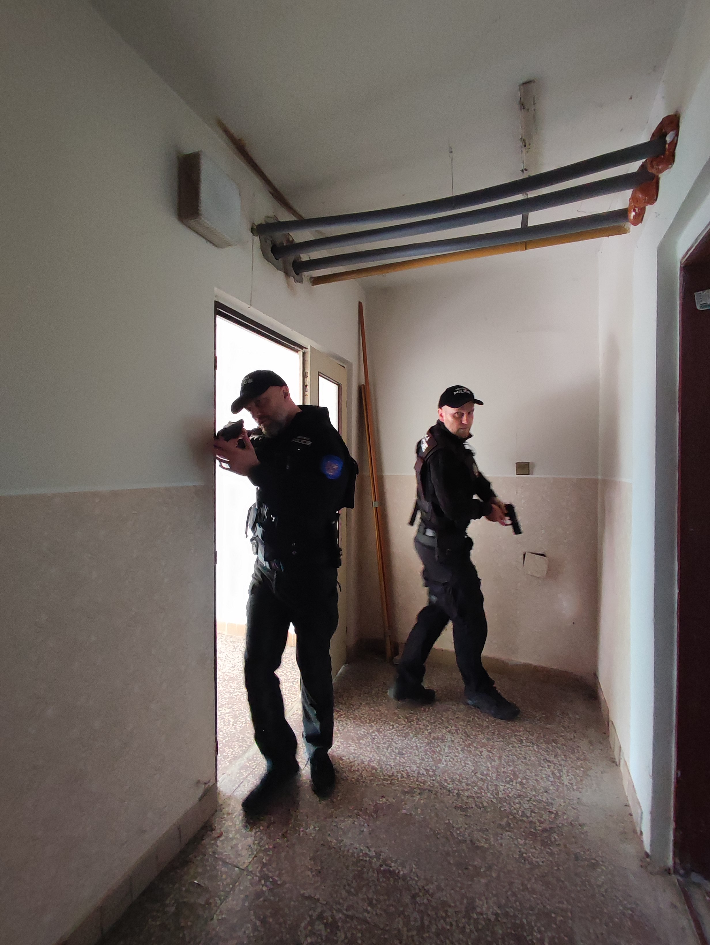 Taktické cvičení se střelnou zbraní při vstupu do opuštěné budovy